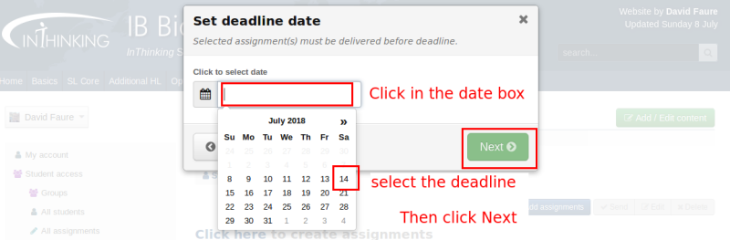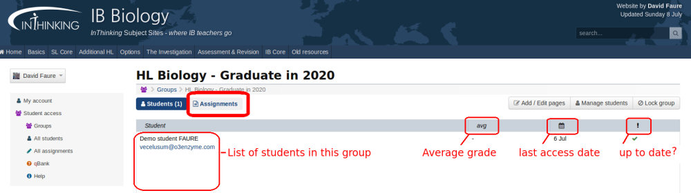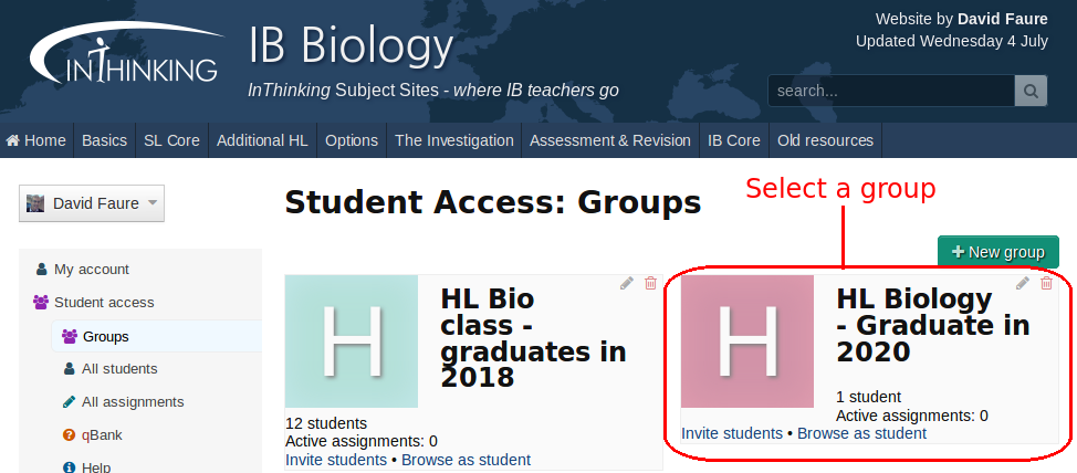 To find out how to set up a student group, please read this page first: Student access - Creating groups