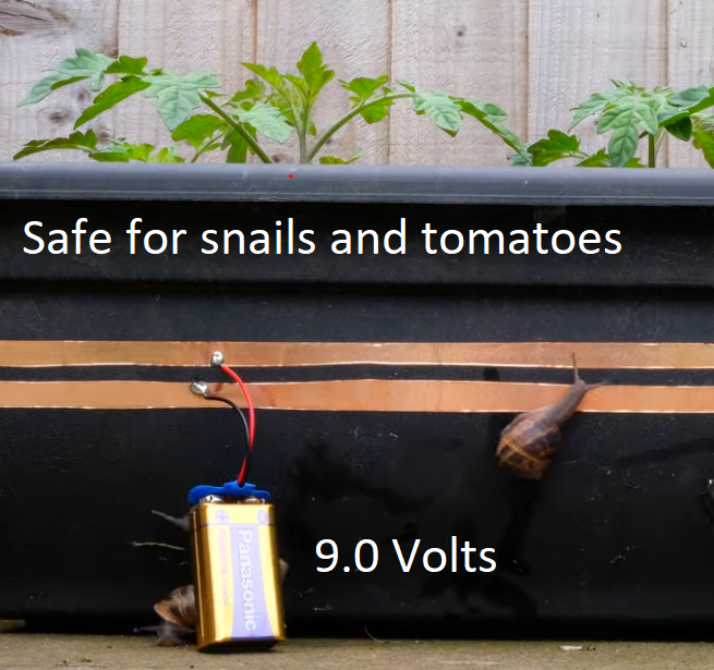 This ingenious DIY video shows how using a 9volt battery and some copper tape can prevent tomatoes from being eaten by snails. It's like the principal of an electric fence in a farm, only this fence is designed to keep snails out. I wonder if the snails are really sensitive to electricity, and would a 1.5 volt battery be just as effective and less dangerous for the snails?