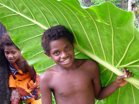 A typical game played by Kaulong children in New Britain demonstrates this type of play. Anthropologist Jane Goodale (not the primatologist) gave the children bananas so that every child could have a banana. Instead of the children having a contest of getting the best banana or competing to get the most bananas, every child took a single banana. Each child then cut his/her banana in half, eating half and then giving the other half to another child. Then they took that half and cut it in half and repeated the process. They did this until they simply had stubs, laughing all the way. This demonstrates the types of sharing behaviour which are necessary for such hunter-gatherer societies. (Diamond, p 91)