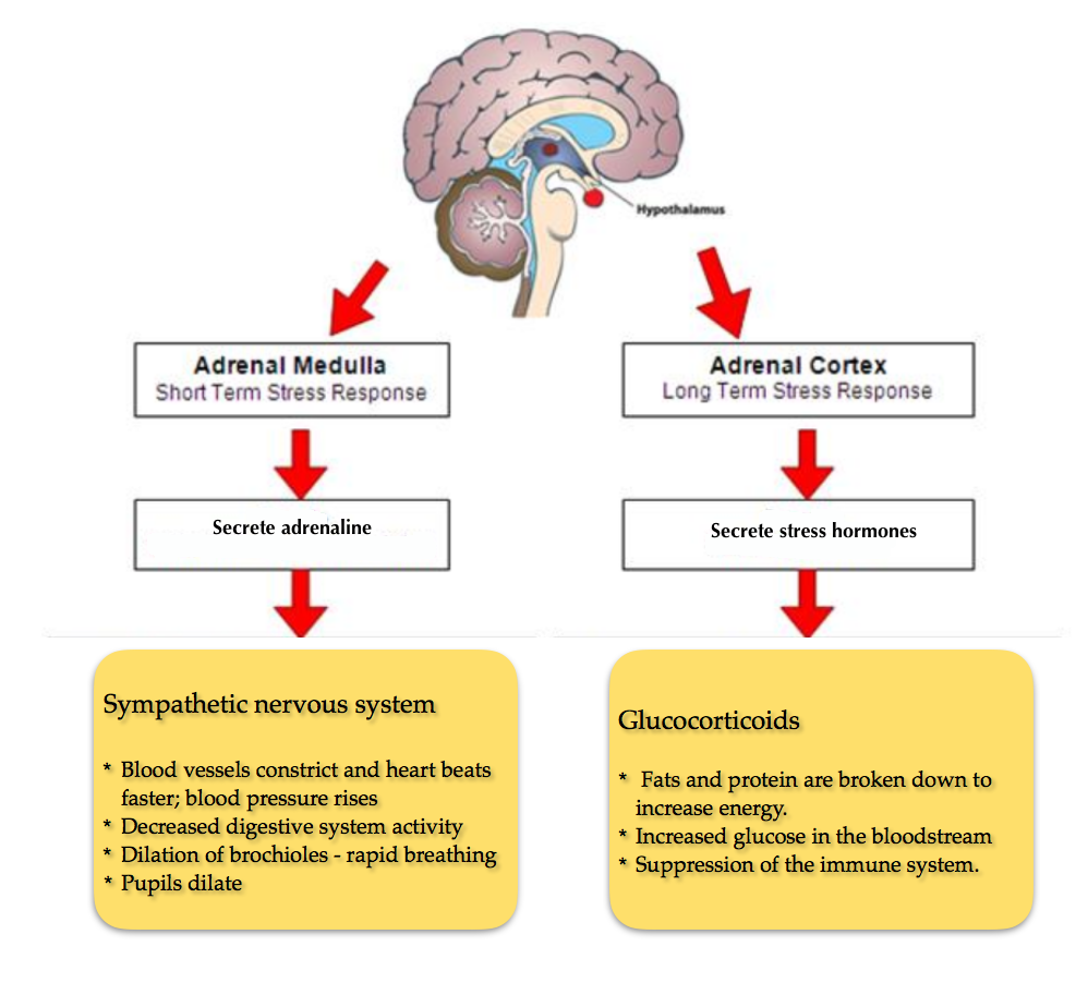 - Digestion, the reproductive system and the immune system are suppressed to allow more energy for emergency functions