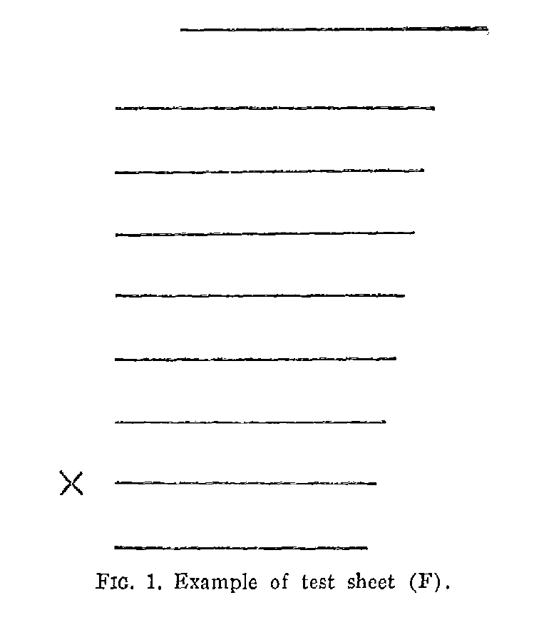 Each individual was brought into a room by him or herself. For the test, they were given a set of nine lines (see diagram below).