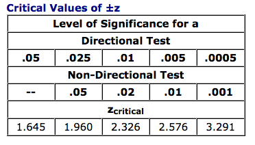 A Wilcoxon signed ranks test was carried out on the data. The z value for this test was -2.78. Using the chart below, write a statement of significance.