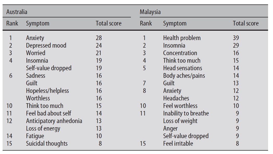Below you can see how each culture ranked the various symptoms in terms of the amount of distress they cause.