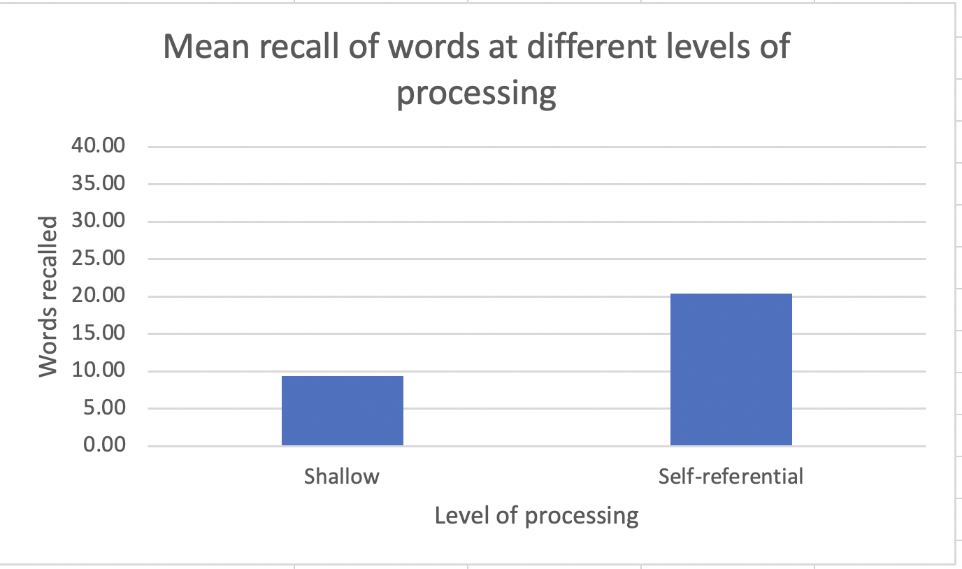 From our study, we are able to conclude that self-referential encoding leads to greater recall of words than shallow processing.