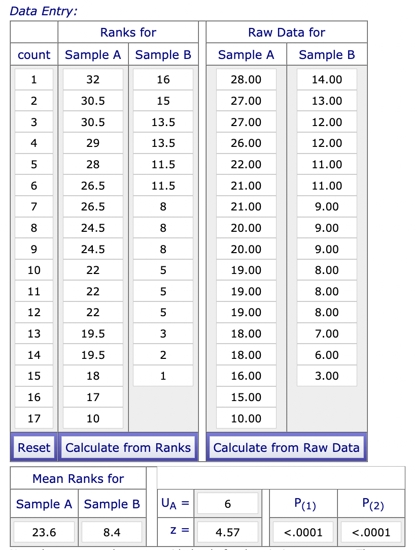 Since we had a small sample size, used an independent samples design, and our data was ratio, we used a Mann-Whitney U test. A Mann-Whitney U test indicated that there was a significant difference between the average number of words recalled when "shallow processing" was used (Mdn = 9 ) and for when self-referent processing was used (Mdn = 20), U = 6.0, p < 0.001. This means that we can reject the null hypothesis. It appears that self-referential encoding leads to great recall than shallow processing when asked to recall a list of adjectives.