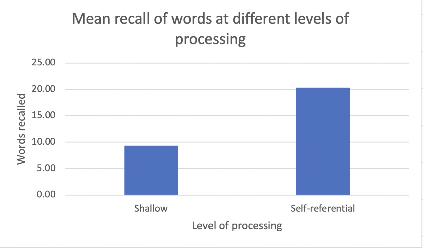 For future research, it would be interesting to see if thinking about yourself leads to deeper processing than other forms of deep processing – for example, mental imagery. It could be that making personal connections is even more important than trying to create images, which has been shown in the past to produce higher levels of recall.