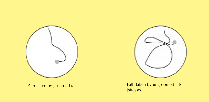 Meaney carried out a study of the role of stress hormones on memory. More importantly, this study shows that the mother's touch or grooming of her offspring, actually leads to gene expression which helps in the regulation of stress. Those rats that are groomed, regulate stress better. This leads to lower levels of life time cortisol levels which means that they have less memory impairment latter in life.