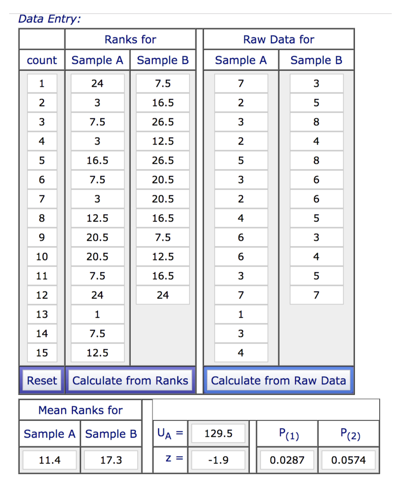 Appendix ii. Calculation of the Mann Whitney