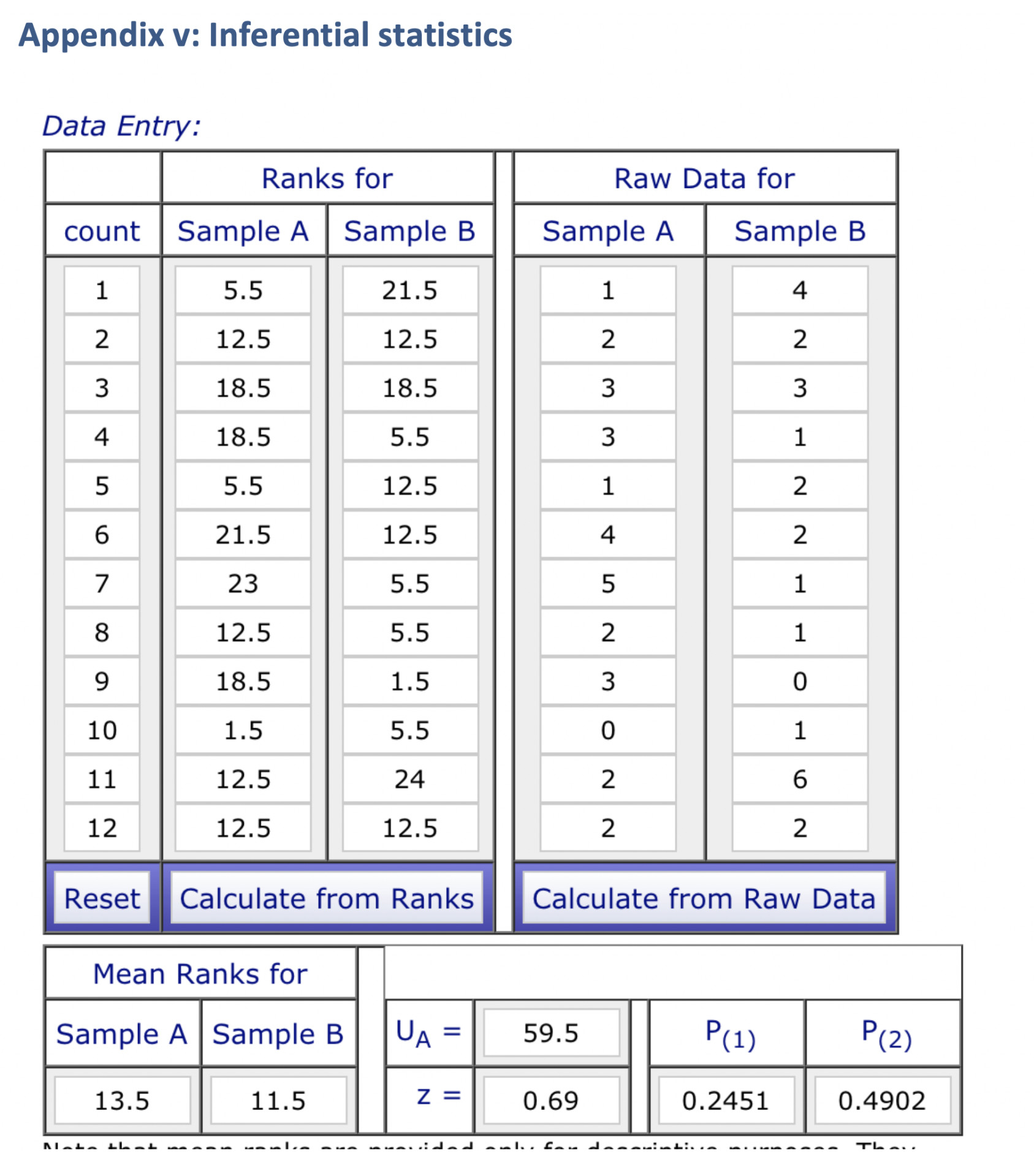 Appendix ii. Mann Whitney calculations