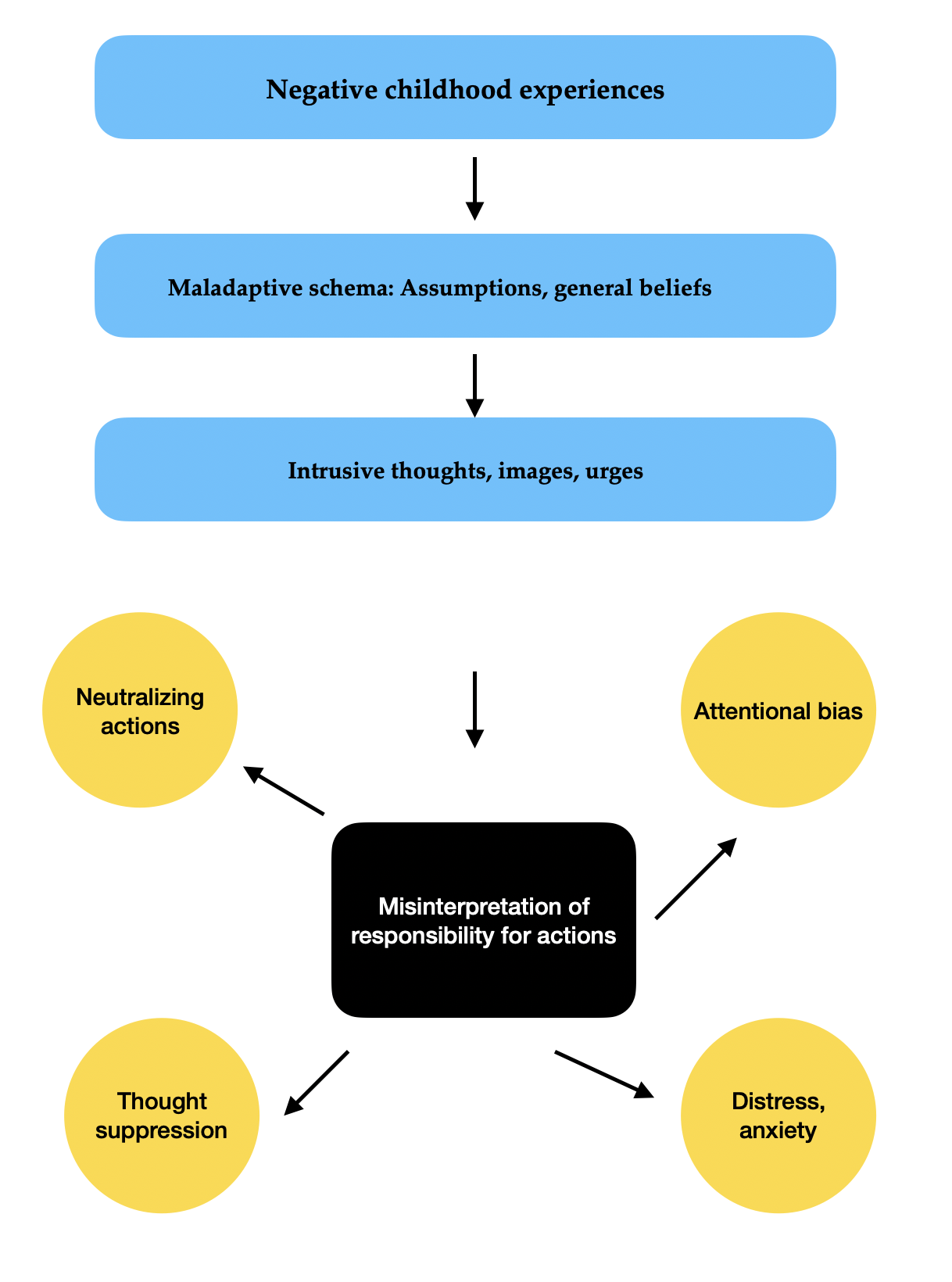It is interesting here to remember the pink elephant thought experiment from the video: the harder you try not to think about the pink elephant, the more impossible it becomes. Here the same can be true for people with OCD; the more they try to control their thoughts, the worse the obsessional thoughts about danger and harm become, and the more they are compelled to take responsibility by performing neutralizing behaviours.