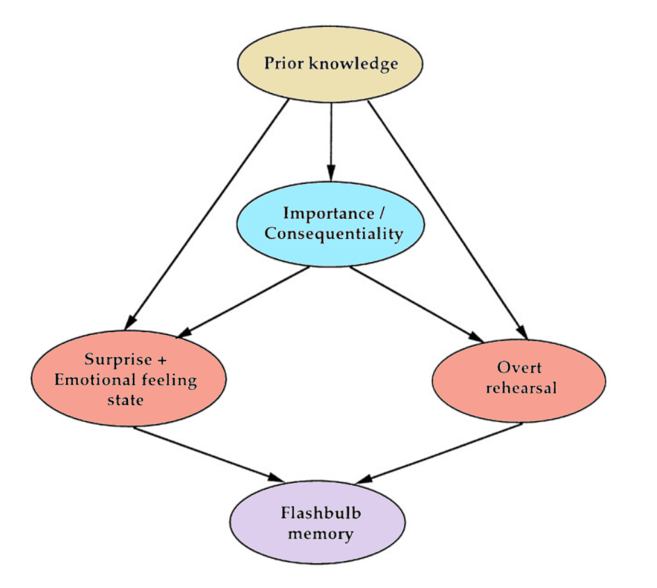 Our prior knowledge and experience play a key role in what will actually be a flashbulb memory. This helps us to determine whether an event is important to us - and it will also determine the level of surprise or emotion in our reaction to the news. If the event is important, we will discuss this with others or ruminate (think a lot about) this event, thereby engaging in overt rehearsal. It is the combination of these variables that may lead to a flashbulb memory.
