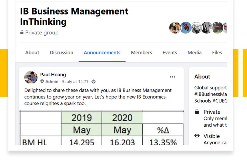 Join the 1,700+ teachers on the InThinking IB Business Management support group for teachers on Facebook. You do not need to be an InThinking subscriber to join this growing support group, to share questions, ideas and resources. Click this link to join the group and to see the recent posts from the global community of IB Business Management teachers.