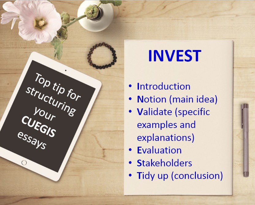This is a general essay framework for structuring the CUEGIS essay, which students might find useful for writing their answer for Section C of Paper 2: INVEST in your CUEGIS essay.