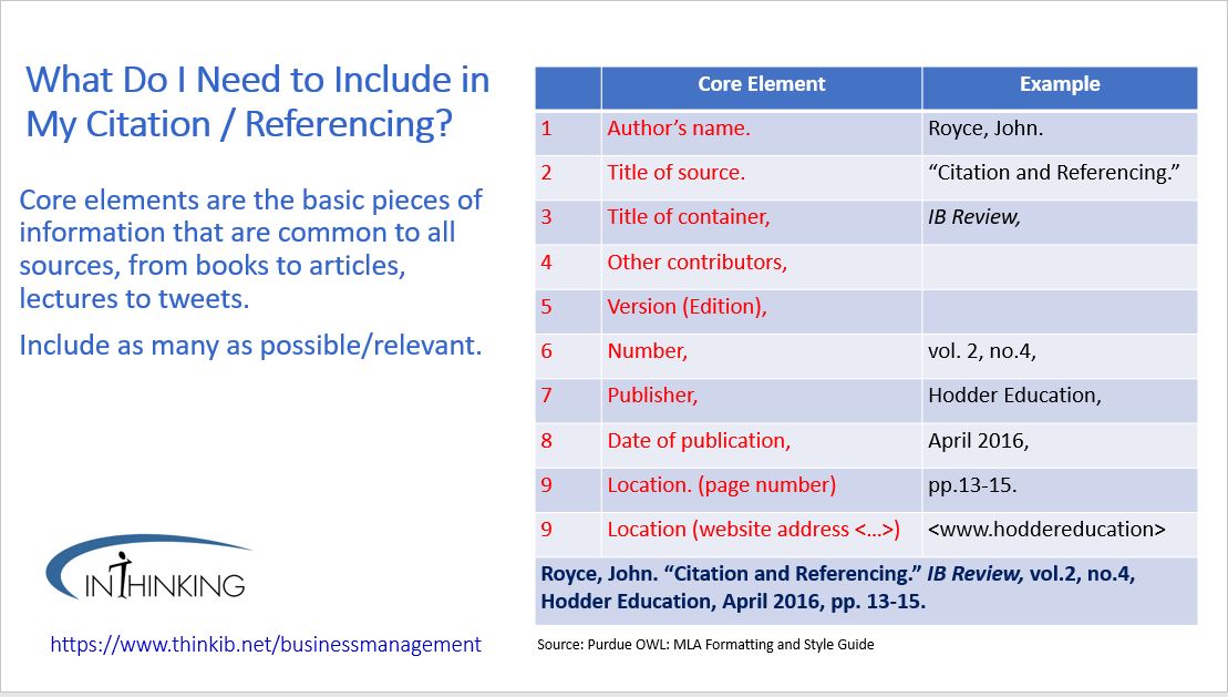 For schools using the MLA referencing style, here is a straightforward template that you can use for C&R in the Extended Essay and Internal Assessments for Business Management.