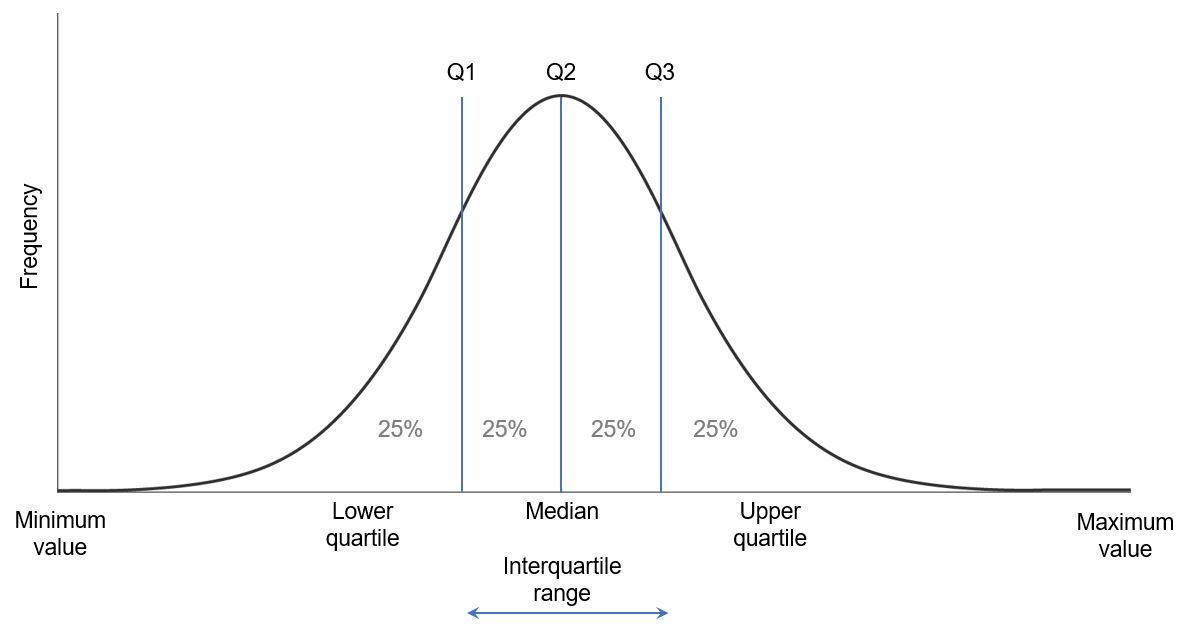 The interquartile range (IQR) measures the spread of the middle half of the data in a data set. It is the range for the middle 50% of the sample and shows where most of the values lie.