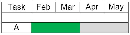 Typically, managers will shade in (manually on a display board, or via computer software) the Gantt chart to indicate the level of progress. For example, the shading shown here indicates the activity has been half completed: