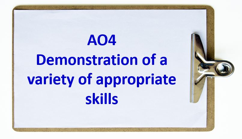 AO4 - Demonstration of a variety of appropriate skills, specific to the subject.