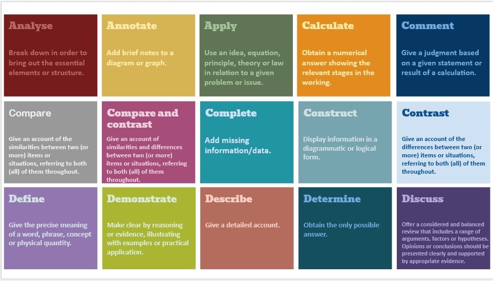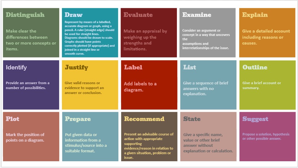 Do you know what these 10 command terms mean (require students to do) and can you rank these in order of difficulty, based on their assessment objective (AO)?