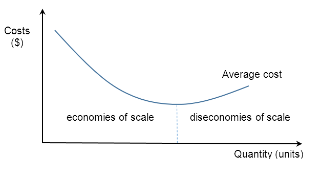 In other words, economies of scale reduce the average costs of production (costs per unit) when a business is able to operate on a larger scale.