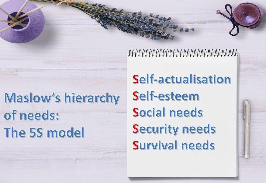 Notice that all the levels (of needs) in Maslow's model begin with the letter 'S' - the 5S model of Maslow's hierarchy of needs: