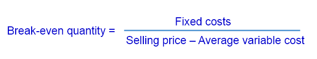 Break-even exists when a firm’s sales revenues cover all of its production costs. The break-even quantity (BEQ) is the level of output where a business does not make either a profit or a loss. The formula for calculating the BEQ is: