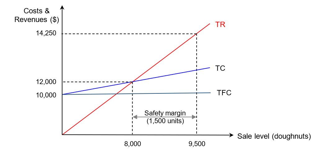 Hence, the safety margin = 9,500 – 8,000 = 1,500 doughnuts