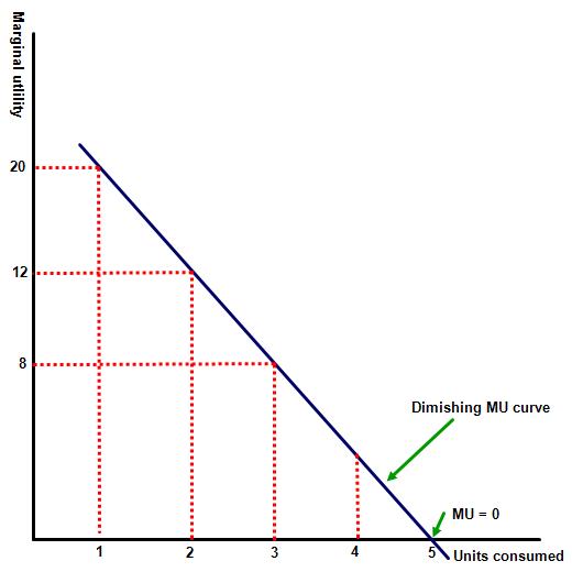 Responses should also include a diagram showing marginal utility falling as the consumer increases their units of consumption. An example of this is shown opposite.