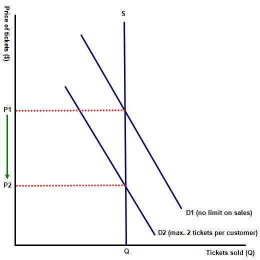 2. Describe the benefits and costs of the above policy. Who benefits and who loses out from restricting sales to 2 tickets per person?
