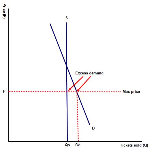 perfectly inelastic. This is the fixed supply of tickets available in the stadium. The second is the impact of a maximum price, imposed below the equilibrium level.