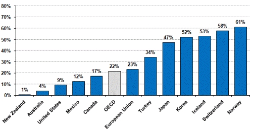 One of the areas where governments will often impose a minimum price on agricultural products, in an attempt to provide security for the nation’s food supplies. The following table illustrates the level of support provided for the sector by nation’s in OECD countries.