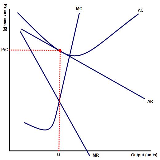 Normal profit: AR=AC or TR=TC, when the revenue coming into the business equals the costs or running the business, including the implicit costs