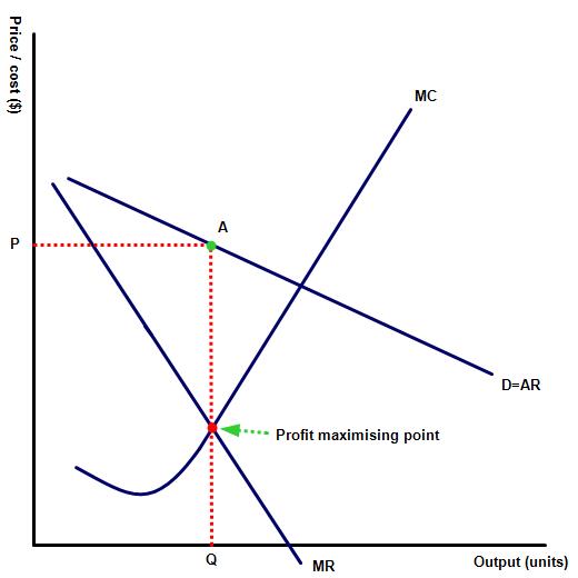 In economics we make the presumption that businesses produce at the profit maximising level. There are of course exceptions to this rule such as firms choosing to maximise revenue or profit satisfy. Some monopolies, controlled or run by the public sector, for example may prioritise service over profit.
