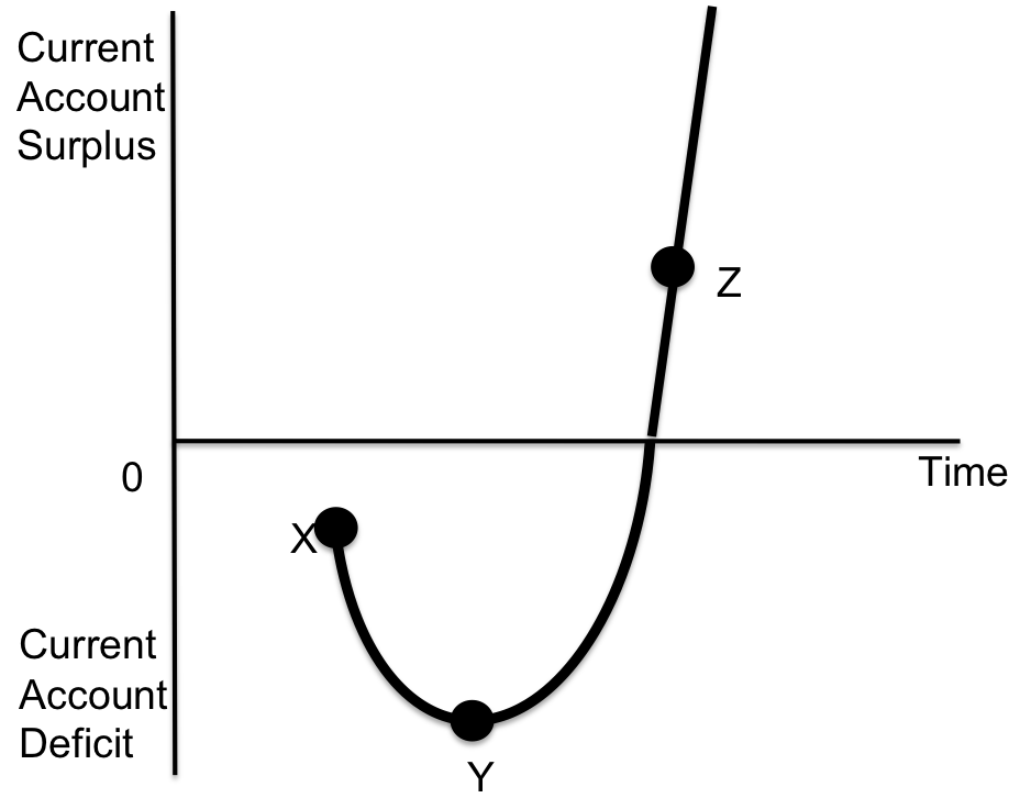 (b) Why according to J curve theory does the current account improve between points Y and Z?