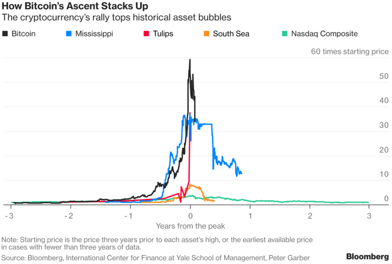 The one very obvious similarity is that Bitcoin and other cryptocurrencies are following a similar pattern that tulips and other bubbles have previously tread. The following chart identifies the classic Jean Paul Rodrigue standard bubble. According to this bubble chart Bitcoin would currently be in the middle of its Bull trap, a period characterised by a small recovery before the inevitable collapse in price.