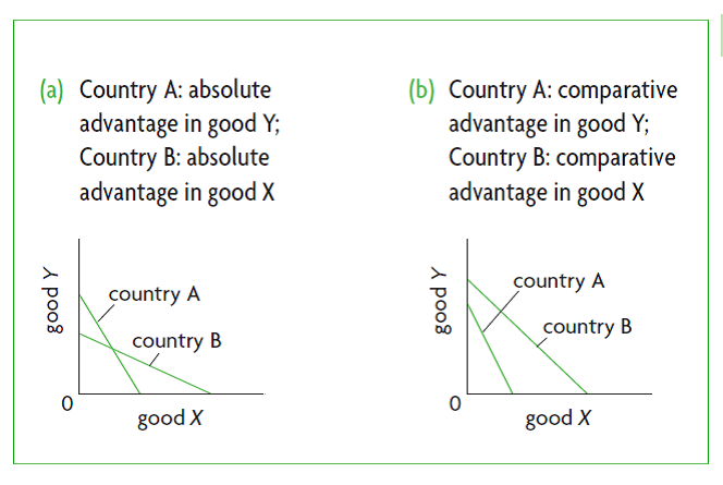 Comparative advantage takes into account the opportunity cost of producing one good which then results in not producing the other. This means that the producer who gives up less of other goods to produce Good X has the smaller opportunity cost of producing Good X and is said to have a “comparative advantage” in producing Good X. (Mankiw, 2007, p.53) In short, comparative advantage reflects the relative opportunity costs of countries.