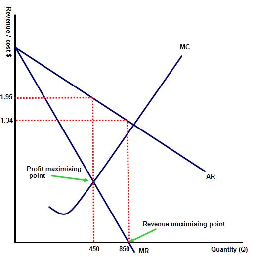 Why are the profit maximising and revenue maximising levels of output different? Shouldn't profit also be maximised where revenue is at its highest.