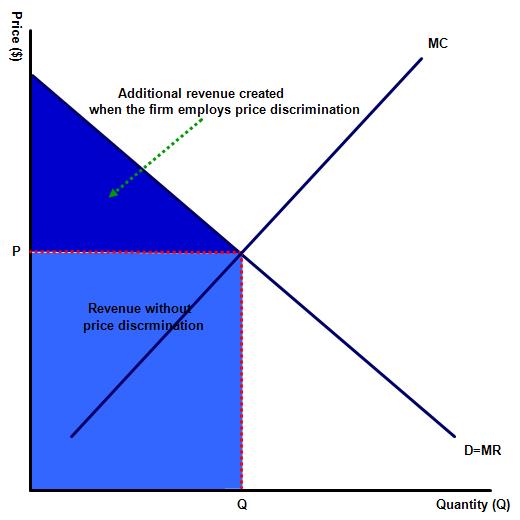 (c) Illustrate the market for a product under first degree price discrimination and highlight the additional revenue created when the firm employs price discrimination.
