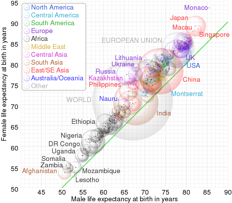 (c) The table below illustrates the life expectancy in a range of Developed nations.
