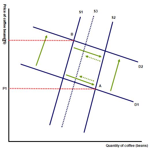 (c) Illustrate the market for coffee on a supply and demand diagram and show the effect of the changes predicted in the video.