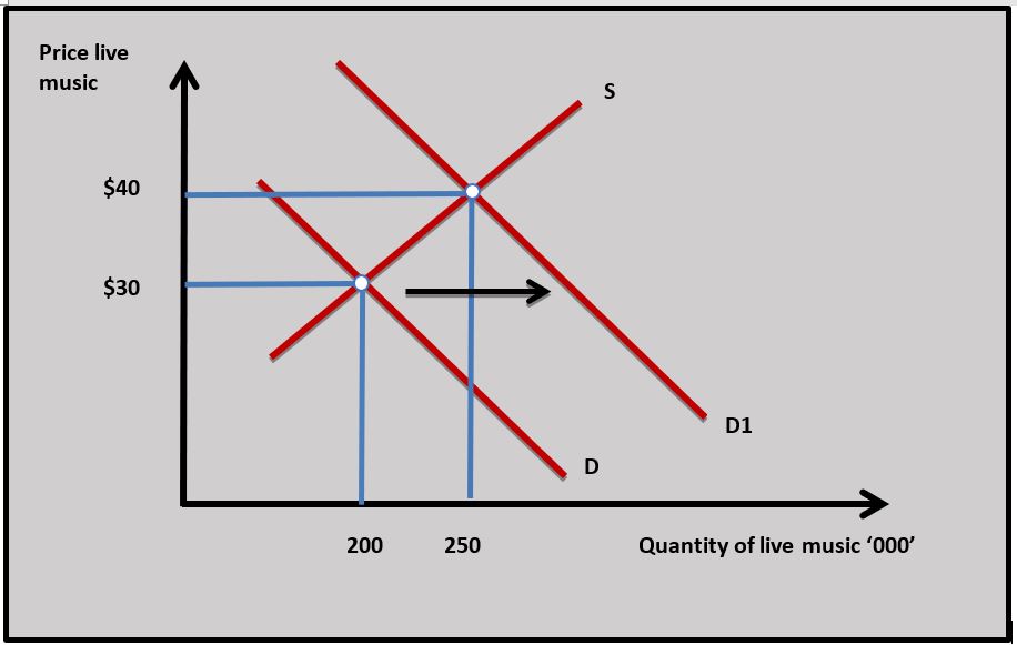 - A diagram showing a rise in demand for live music. The diagram opposite shows an increase in demand for live music from D to D1