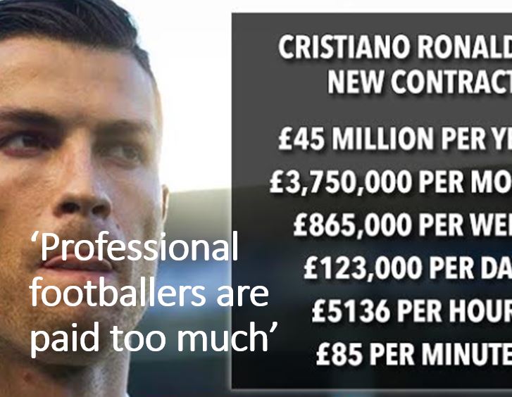 The claim: ‘Professional footballers are paid too much’ can be based on the view that someone who plays a professional sport should not be paid as much as they are. Is, for example, Lionel Messi worth the $127 million a year he earns. The economic policy view might be to put high taxes on people who earn such high salaries.