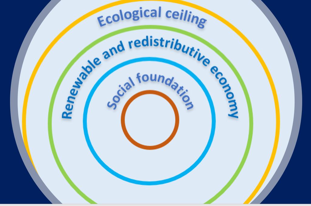 Raworth's view is that governments should move away from being overly focused on Economic growth because of its environmental consequences (renewable) and be more concerned with how existing resources can maximise the welfare of everyone (redistributive) now and in the future. The centre of the 'doughnut' (social foundation) represents the number of people in society who do not have access to the necessities of life.