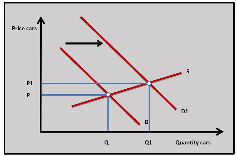 The diagram shows the market for second-hand cars in a recession when real incomes are falling.