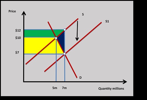- Explanation that the government will have to fund the subsidy equal to the whole shaded area in the diagram.