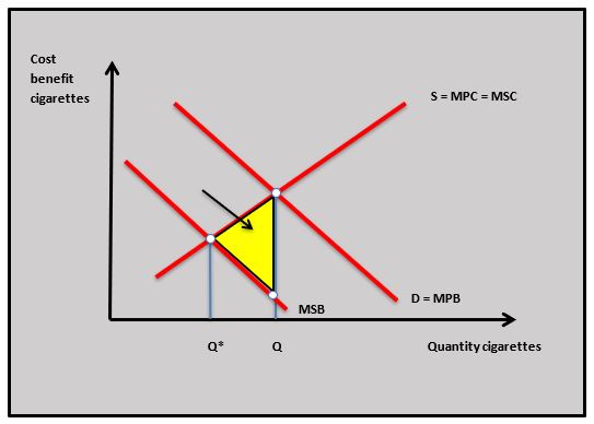 Which of the following is not true about the diagram showing the market for cigarettes?