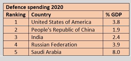 Research the defence spending of another country and think about the reasons for their level of defence spending.