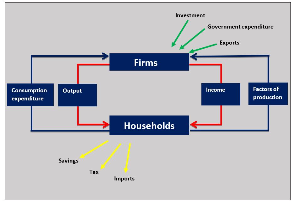 - A circular flow of income diagram to show how high income, output and expenditure can increase welfare.