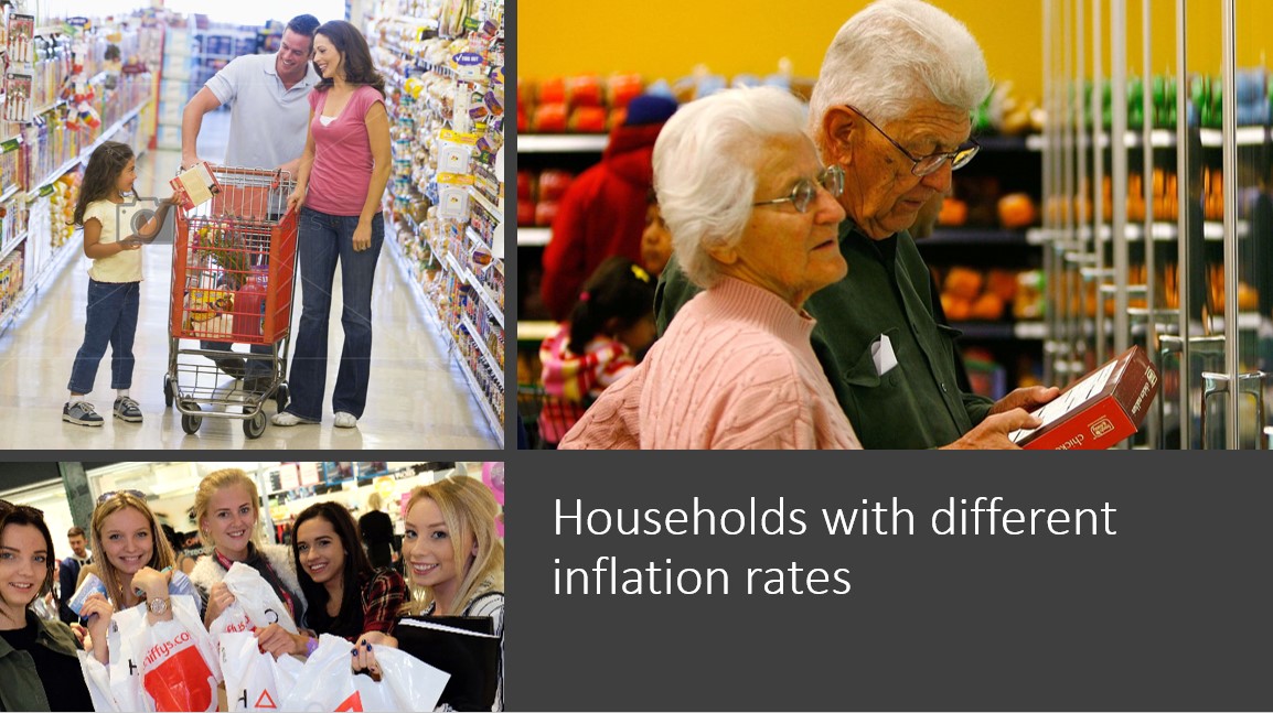 average based on the spending patterns of the average consumer. This consumer does not exist in reality so different inflation rates will exist for different consumers. Young people who eat out in restaurants will have a different inflation rate compared to families that are more likely to eat at home because the price changes in restaurants are likely to be different to the price changes of people who primarily buy their food in supermarkets.