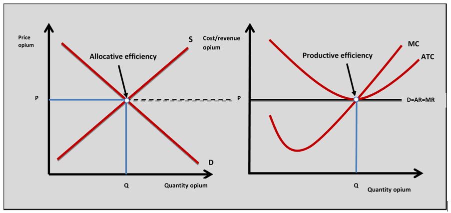 - Evaluation might include discussion of situations when perfect competition does not 'always' lead to productive efficiency if firms are making abnormal profits or losses. There could also be some discussion of the limitations of the assumptions of perfect competition and how this might limit market efficiency in reality such as products not being homogenous or some barriers to entry existing. In the case example, the market might achieve allocative and productive efficiency but the external costs associated with opium production and consumption are likely to reduce welfare in society.