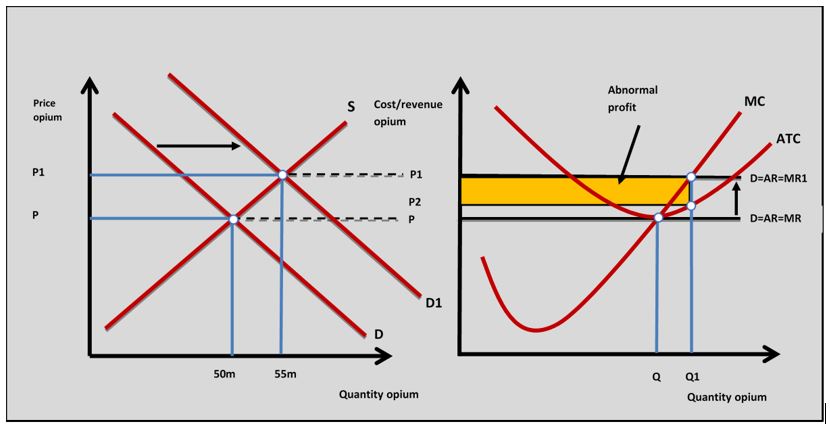- A diagram to show the impact of an increase in demand for opium. This is shown in the diagram below where an increase in the demand for opium in Afghanistan leads to abnormal profit.